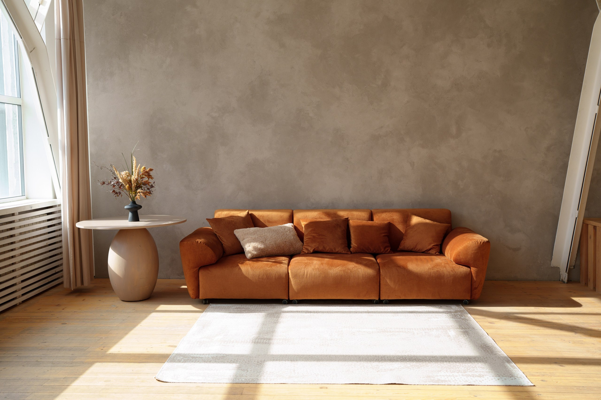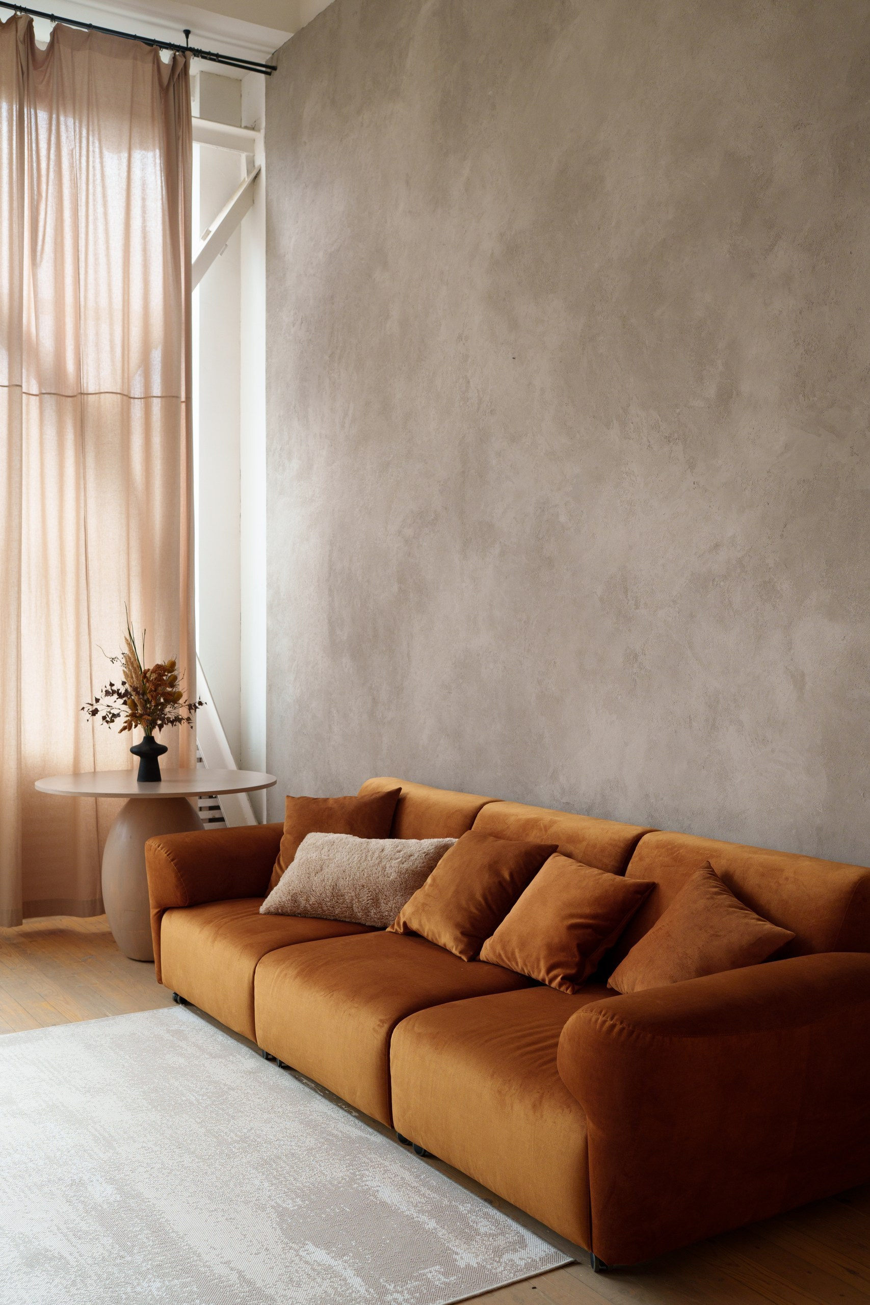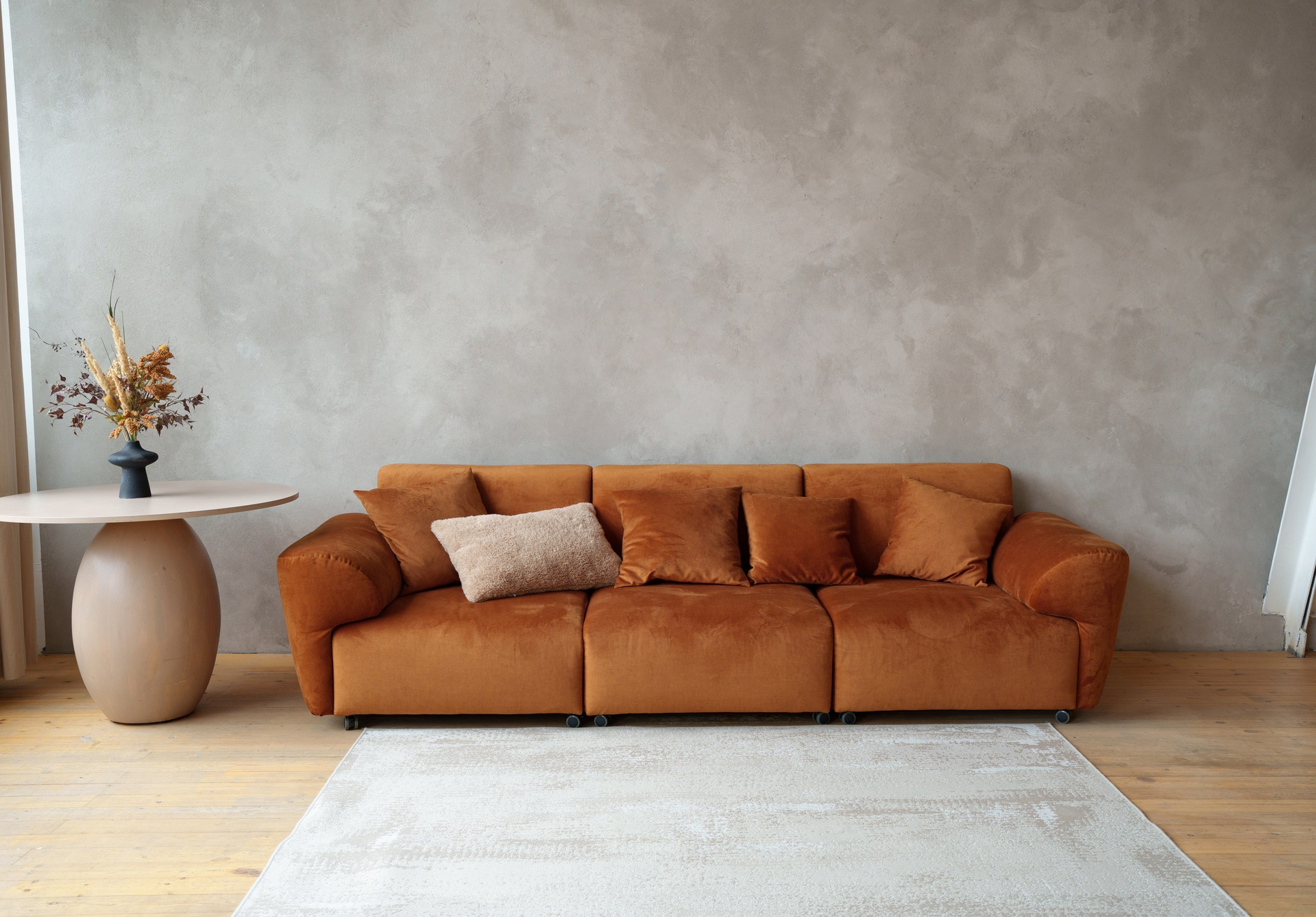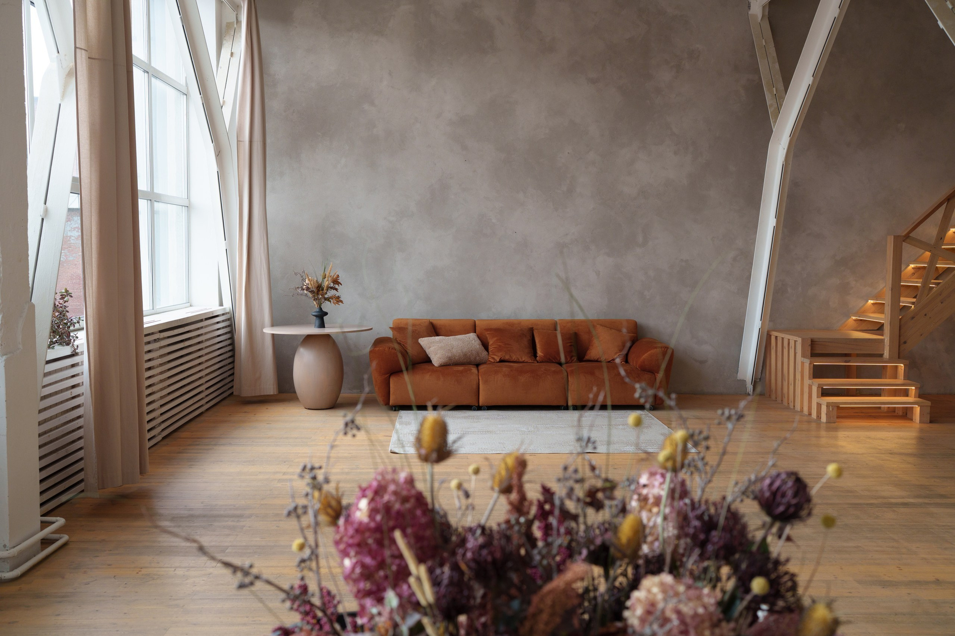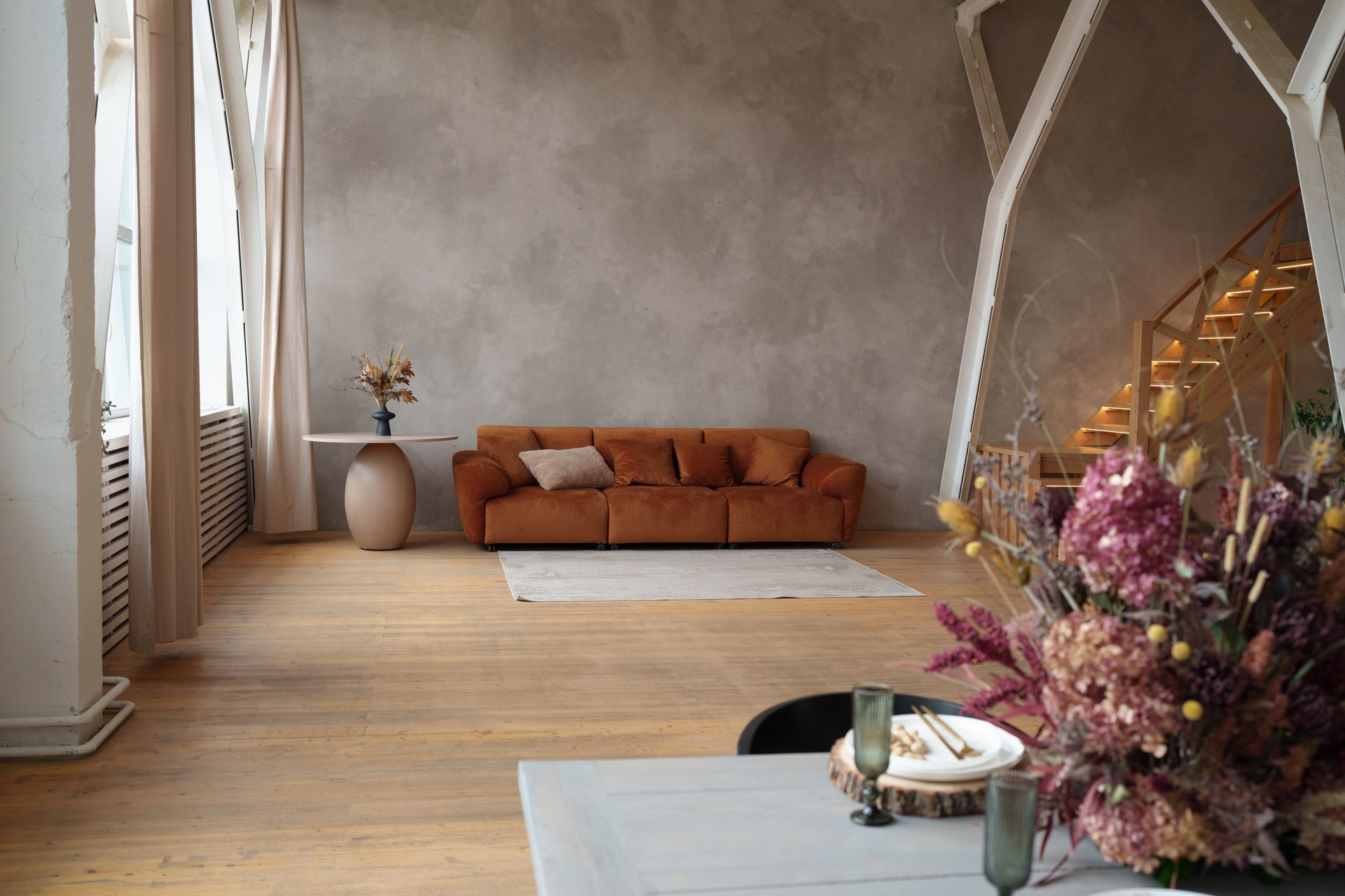 - Гостиная с диваном серого цвета и журнальным столиком;