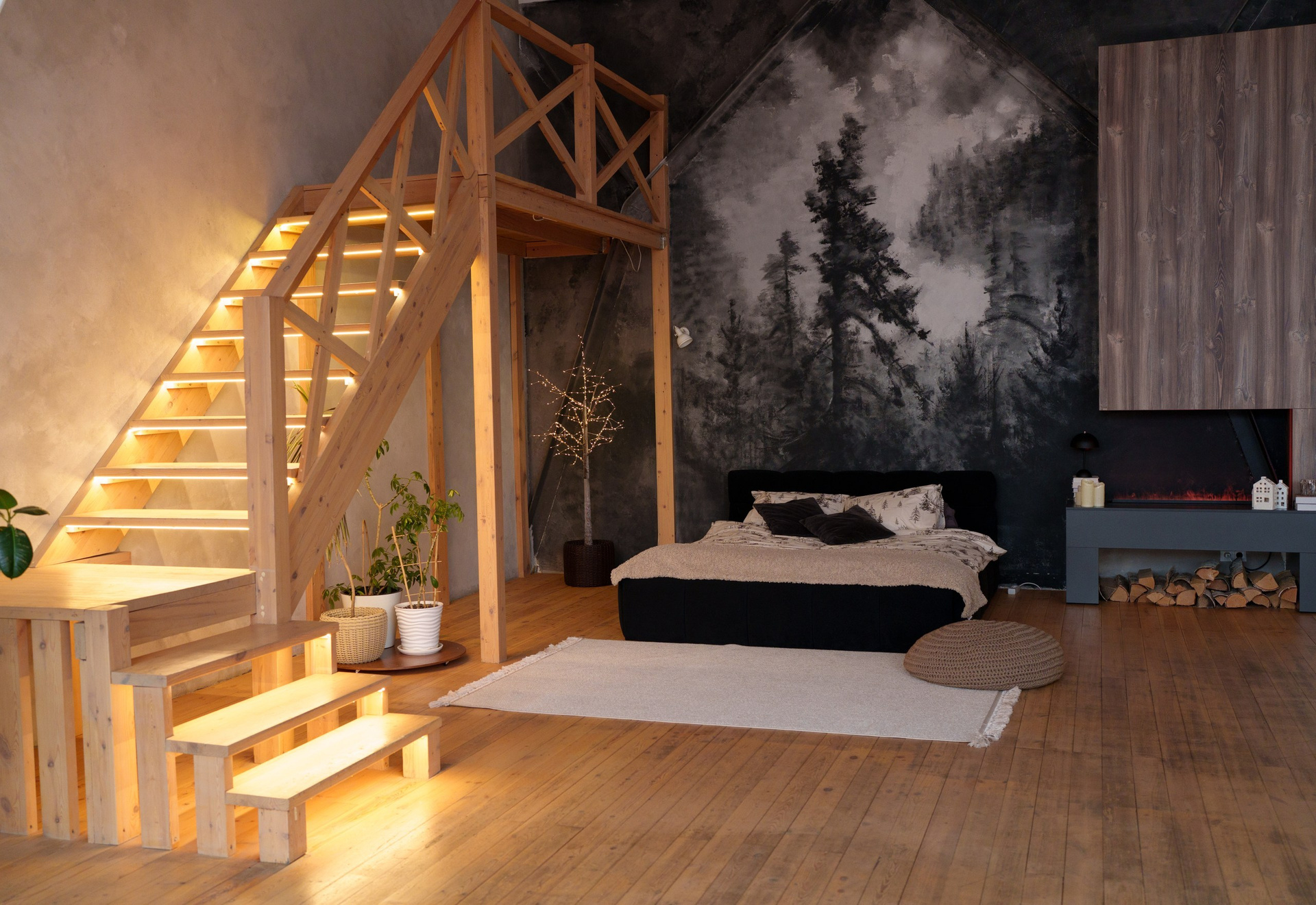 - Деревянная лестница;