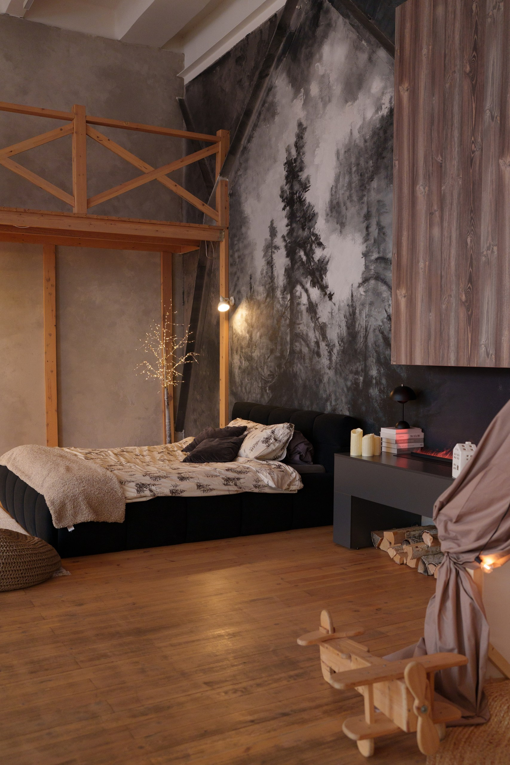 - Спальня в окружении домашнего реквизита;